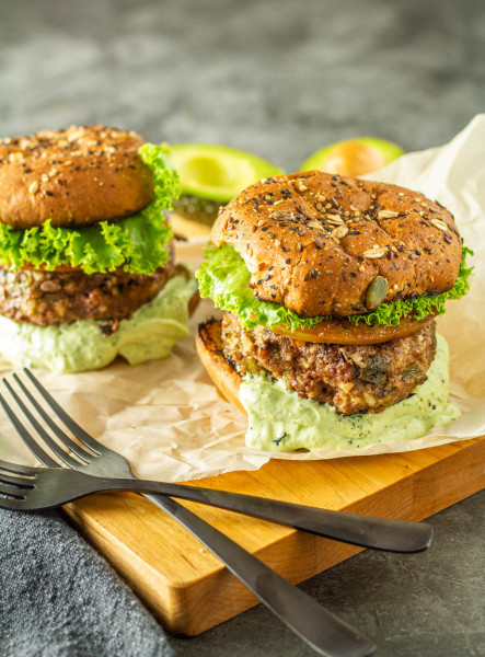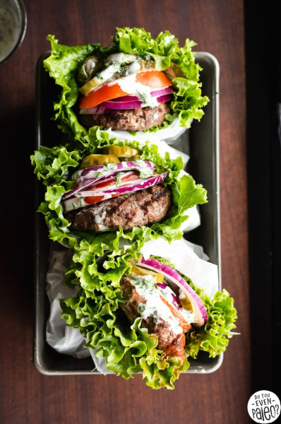 5. Easy Bunless Burgers with Cilantro Dill Mayo Sauce