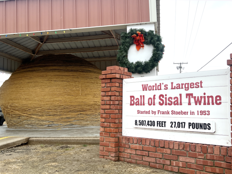 Twine is often used to bind hay into stackable bales. The folks in Cawker City found another use for it.
