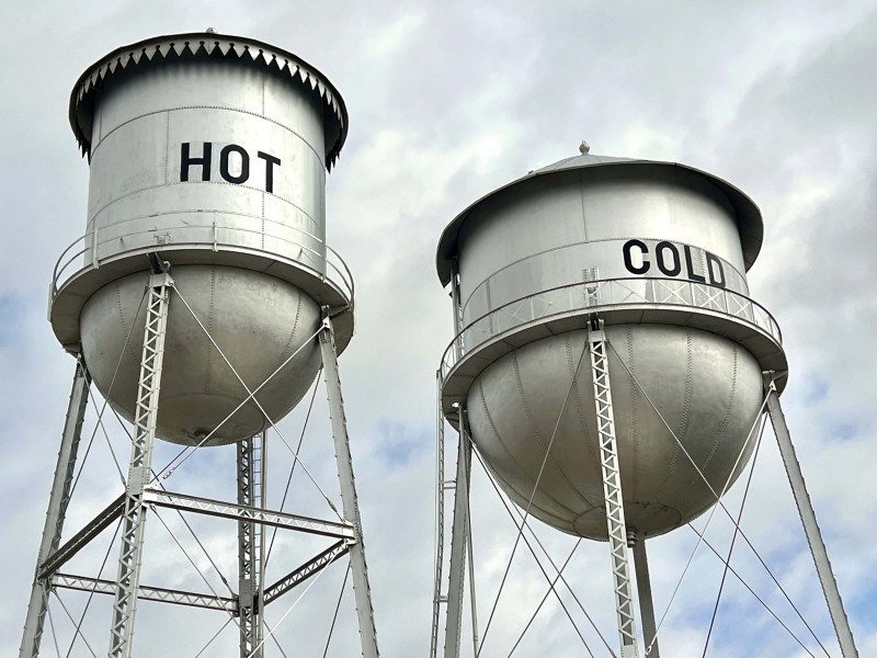 As the story goes, high school students painted the temperature labels “hot” and “cold” on Pratt’s water towers in 1956.