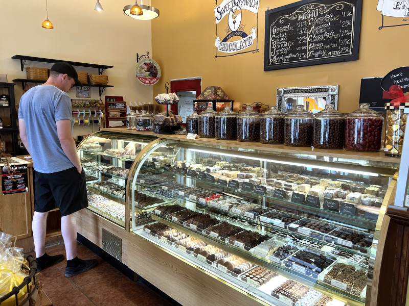 Specializing in truffles, toffees, brittles and chocolate-dipped strawberries, Annedore’s Fine Chocolates uses high-quality ganache to handcraft irresistible treats. Shoppers roam about the store seeking confections, often purchasing chocolate-covered toffee sprinkled with crushed almonds and lightly salted caramels.